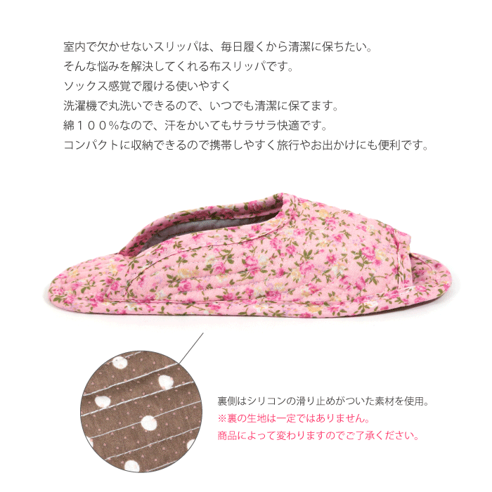■商品名 ルームシューズ 布スリッパ 部屋履き 滑り止め加工 レディース ■商品番号 ak-room ■商品コメント 室内で欠かせないスリッパは、毎日履くから清潔に保ちたい。